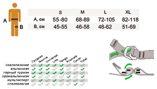 Комфортна система для довгих альпіністських маршрутів, ледолазанія, гірського туризму і стендового лазання. Регульовані ножові петлі дозволяють підгоняти розмір для максимального комфорту і в залежності від шару надетого одягу, крім того, біседку можна одягнути, не знімаючи лижі або кошки. Відмінно підходить як для довгих альпіністських маршрутів, ледолазанія, гірського туризму, так і для лазання на скалах і в зале.